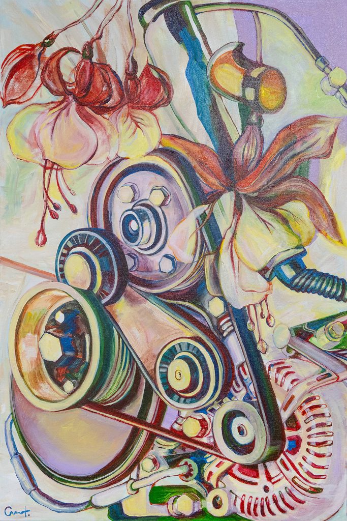Over time, she has become fascinated with mechanical themes — vehicles, motorcycles, and cameras, which she sees as metaphors for life itself: layered, structured, and beautiful, yet often governed by forces beyond our control.